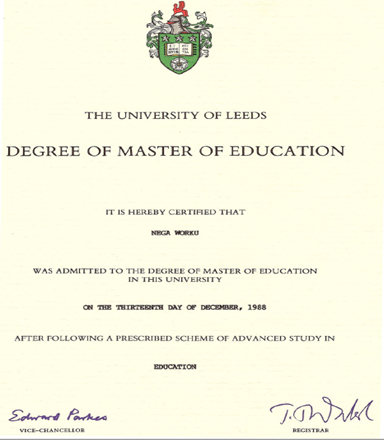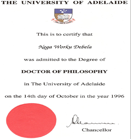 Ph.D. University of Adelaide; M.Ed. Leeds University; MSc. Marshall University, B.A; Asmara University; B.Ed. AAU